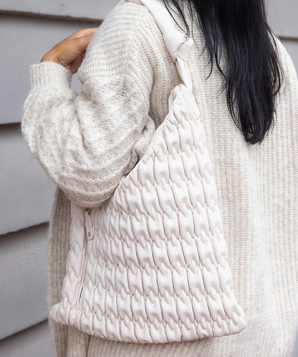 The Hobo Bag Is Back And No One Does It Quite Like Angie. Pair This Slouchy Silhouette, Quilted Detail, And Knotted Handle With An Oversized Blazer And Prepare For Incoming Compliments. Faux Leather 17″ Height, 15″ Width, 2″ Depth Magnetic Closure 9″ Handle Drop 1 Exterior Zip Pocket 1 Interior Zip Pocket, 1 Interior S