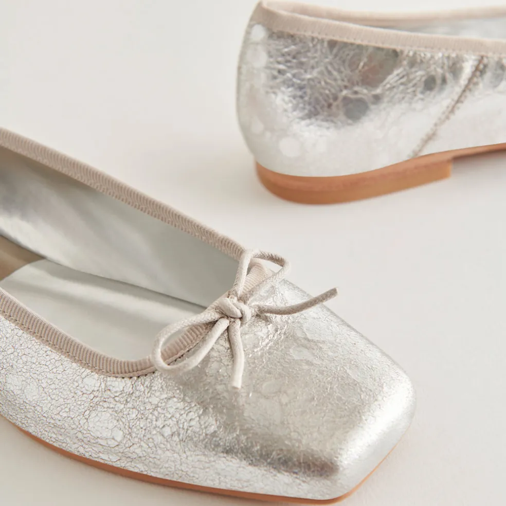 Anisa Silver Distressed Leather Ballet Flats Are A Sophisticated, Classic Style Designed To Go With Anything In Your Closet. A Delicate Bow Detail Completes The Iconic Look.