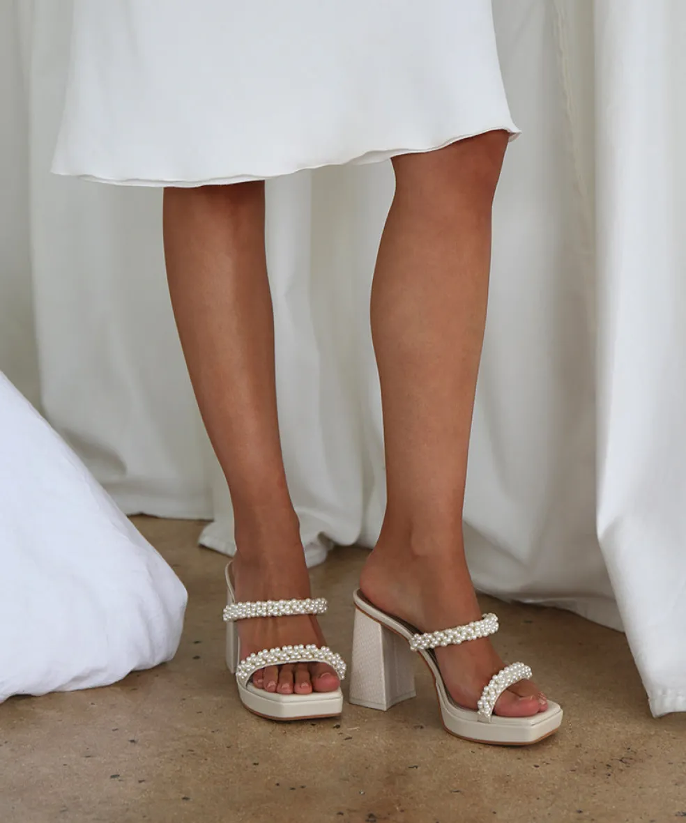 The Ariele Vanilla Pearls Platform Heeled Sandal Is The Statement Event Heel For Spring, Taking You From Weddings To Rooftop Parties In A Snap.
