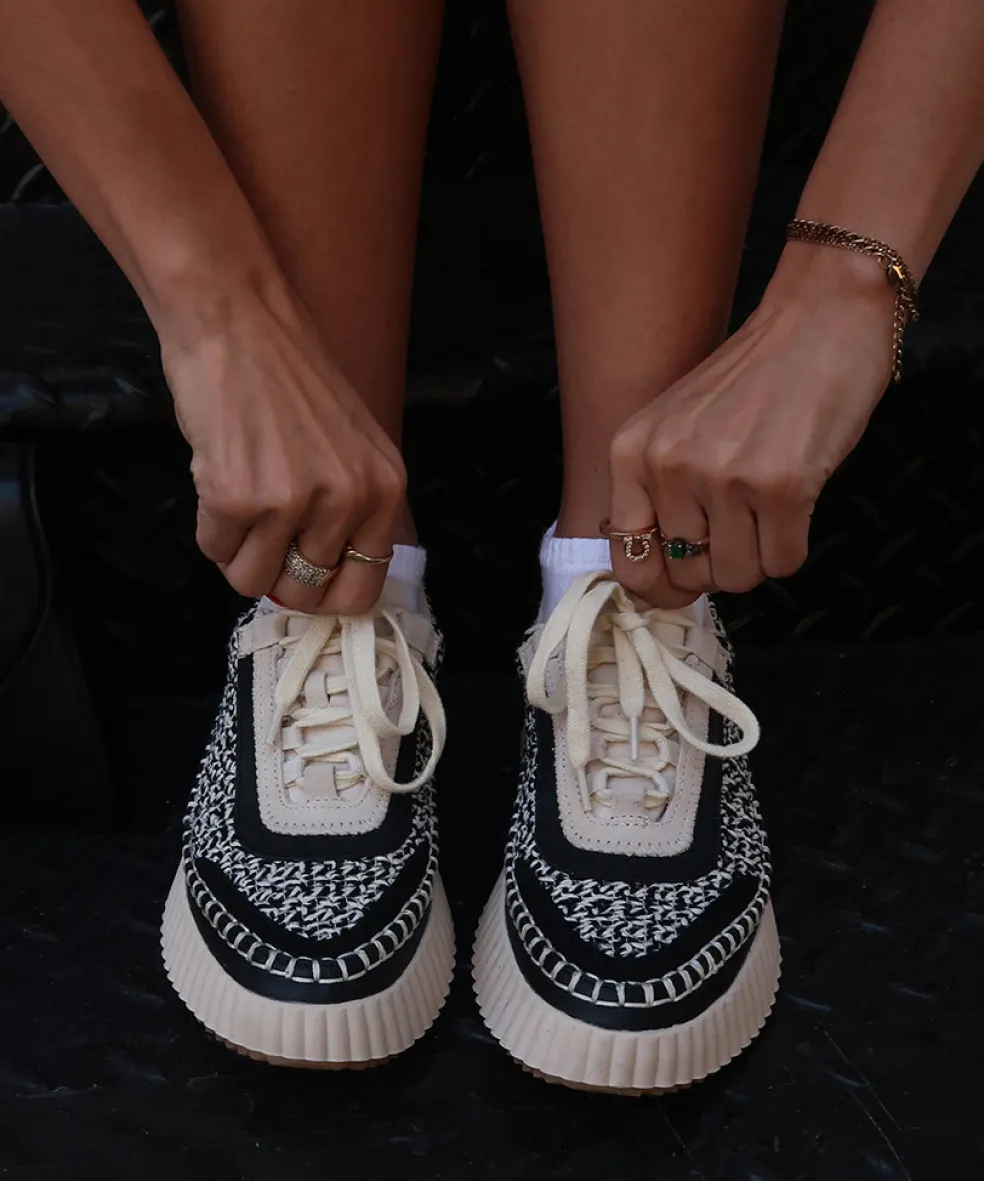 The Elevated, On-The-Go Sneaker. Dolen Pairs A Cool, Modern Platform Sole With A Sporty Lace-Up Knit, Creating The Perfect Go-Anywhere, Do-Anything Look. Comfy And Current, We Can’T Wait To Hit The Streets In These. Suede + Woven Knit Upper Rubber Outsole Textile Lining Synthetic Sock 1.6″ Platform Height Imported