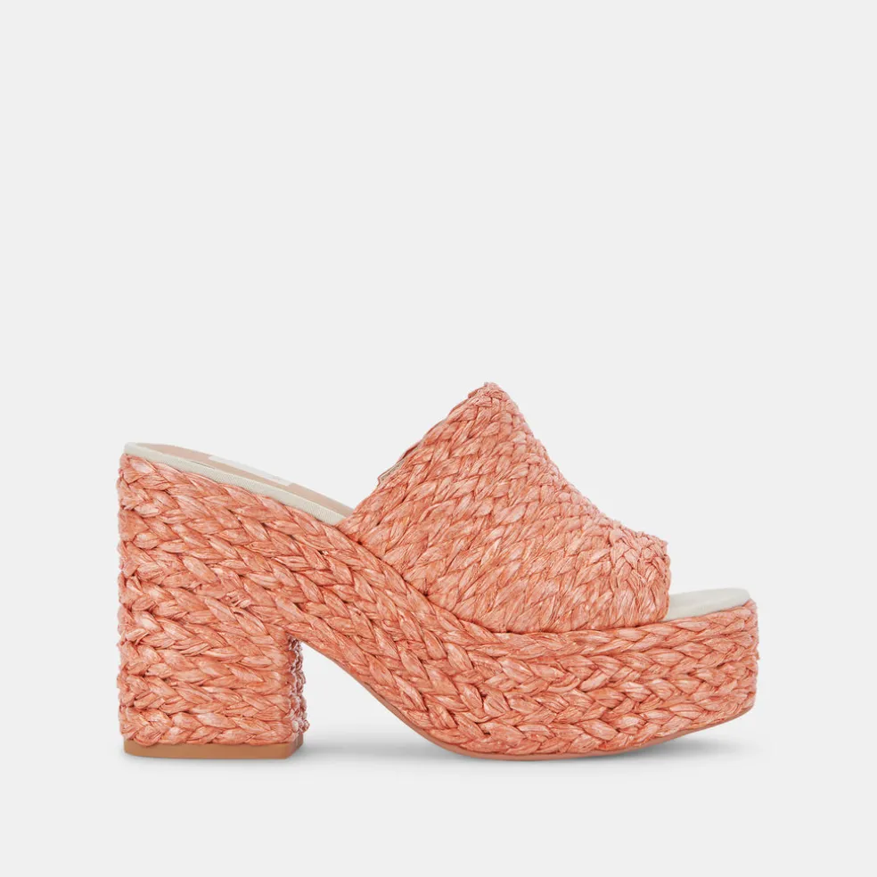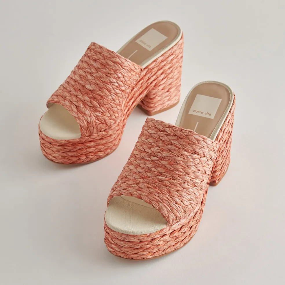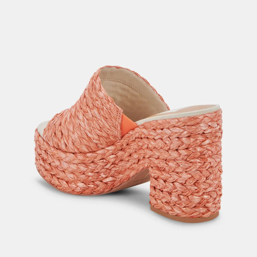 On Our Radar: Raffia. Whether You Embrace Her Retro Vibe Or Style Her More Modern, These Orange Raffia Elora Heels Are Sure To Get Noticed.