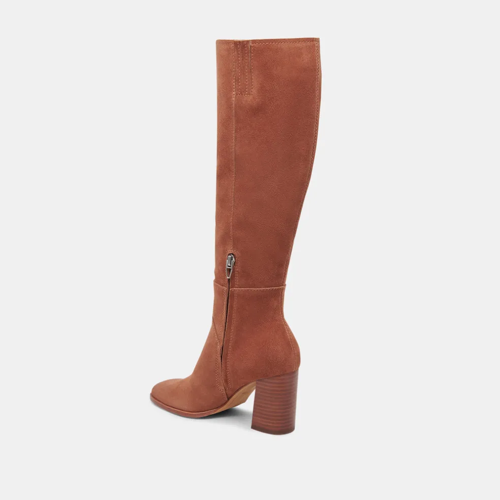 Fynn Wide Calf Boots Dk Brown Suede