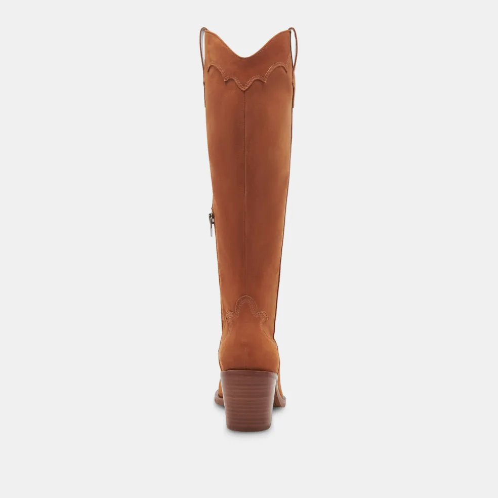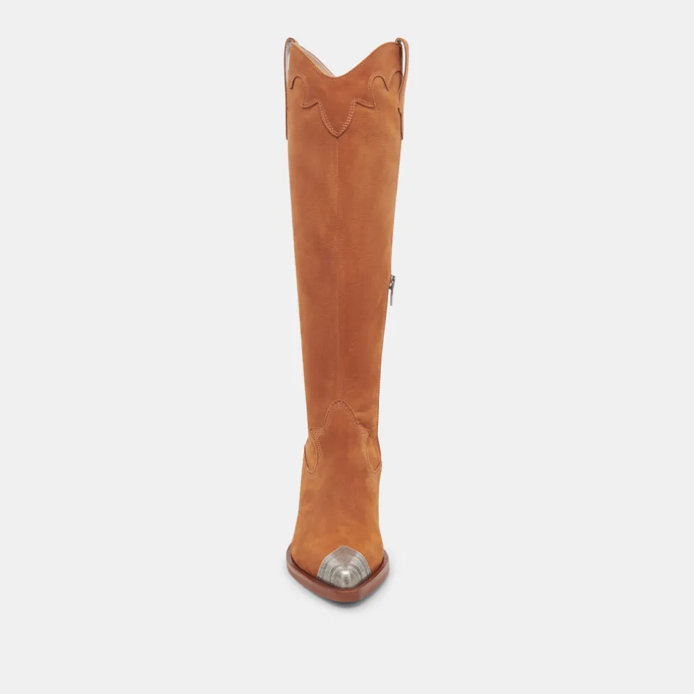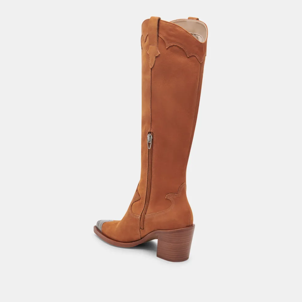 Kamryn Shows Off Subtle Stitching Details And A Contrasting Toe Accent, Lending An Authentic Touch To This Sophisticated Praline Nubuck Knee-High Cowboy Boot.
