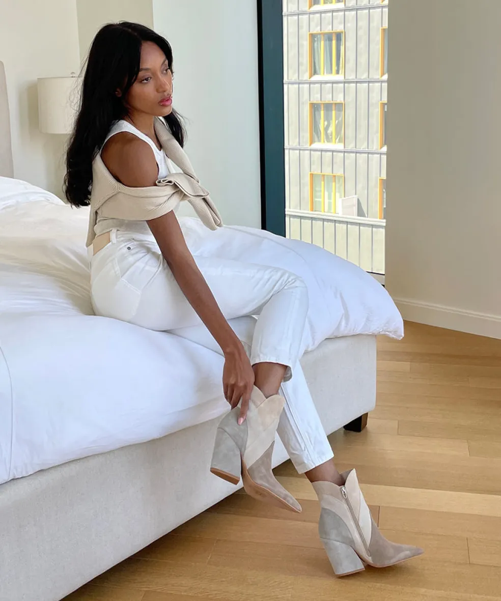 Neena Brings A Modern Feel To Fall With A Rainbow Of Luxe Neutrals That Pair With Everything In Your Closet But Also Stand Out. Shop These Taupe Multi Suede Booties Here!