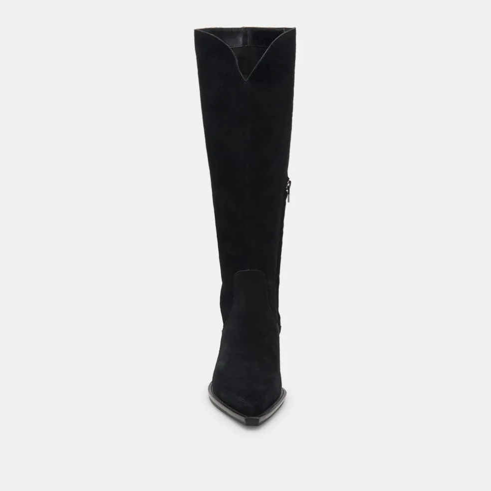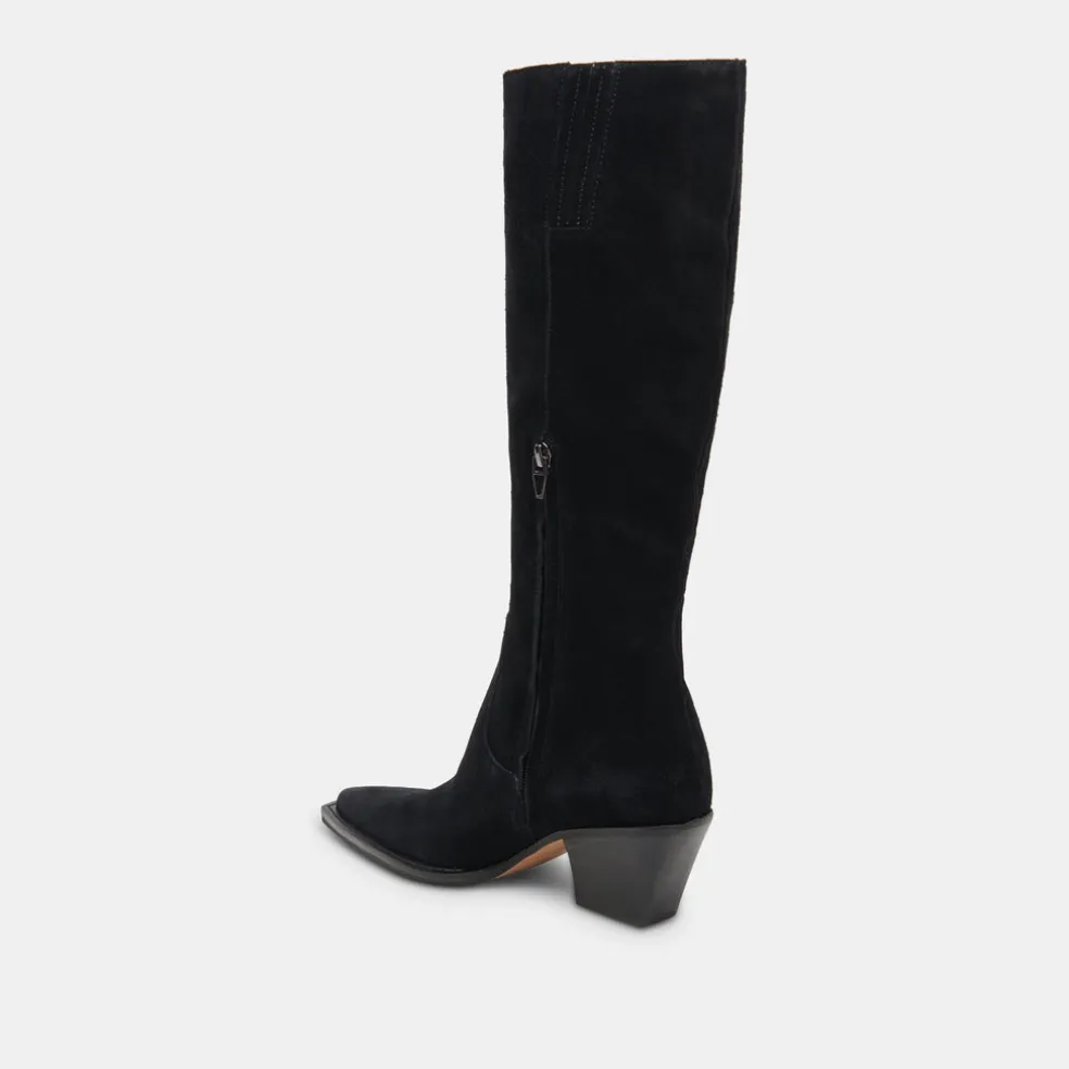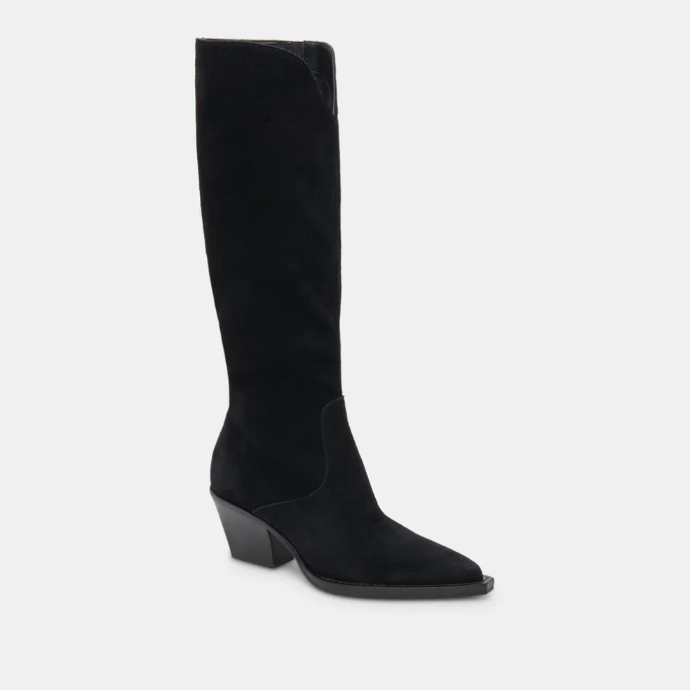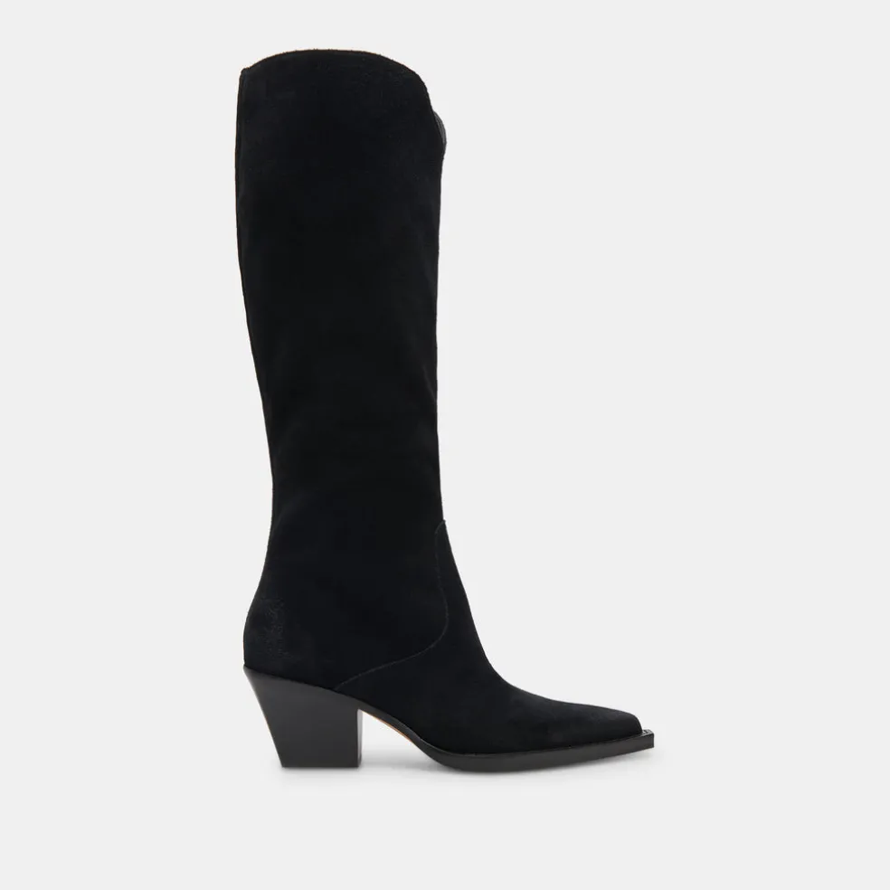 Raj Is Our Luxurious, Understated Tall Onyx Boot For The Season—Consciously Crafted Using Recycled Materials And Finished In Suede For An Effortlessly Elevated Feel.