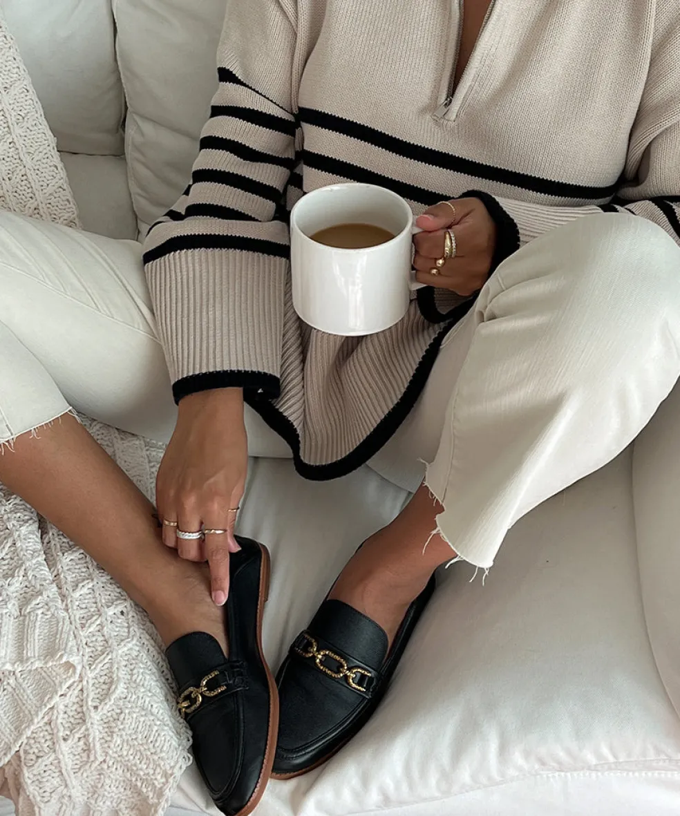 Our Classic Spring Loafer With A Twist, Reign’S Hammered Chain Detailing Brings A Hint Of Edge To This Sophisticated Silhouette. In Rich Black Leather Or Clean, Crisp Ivory Leather, There’S A Pair To Wear With Everything In Your Spring Closet. Leather + Synthetic Upper With Metal Chain Rubber Outsole Recycled Textile L
