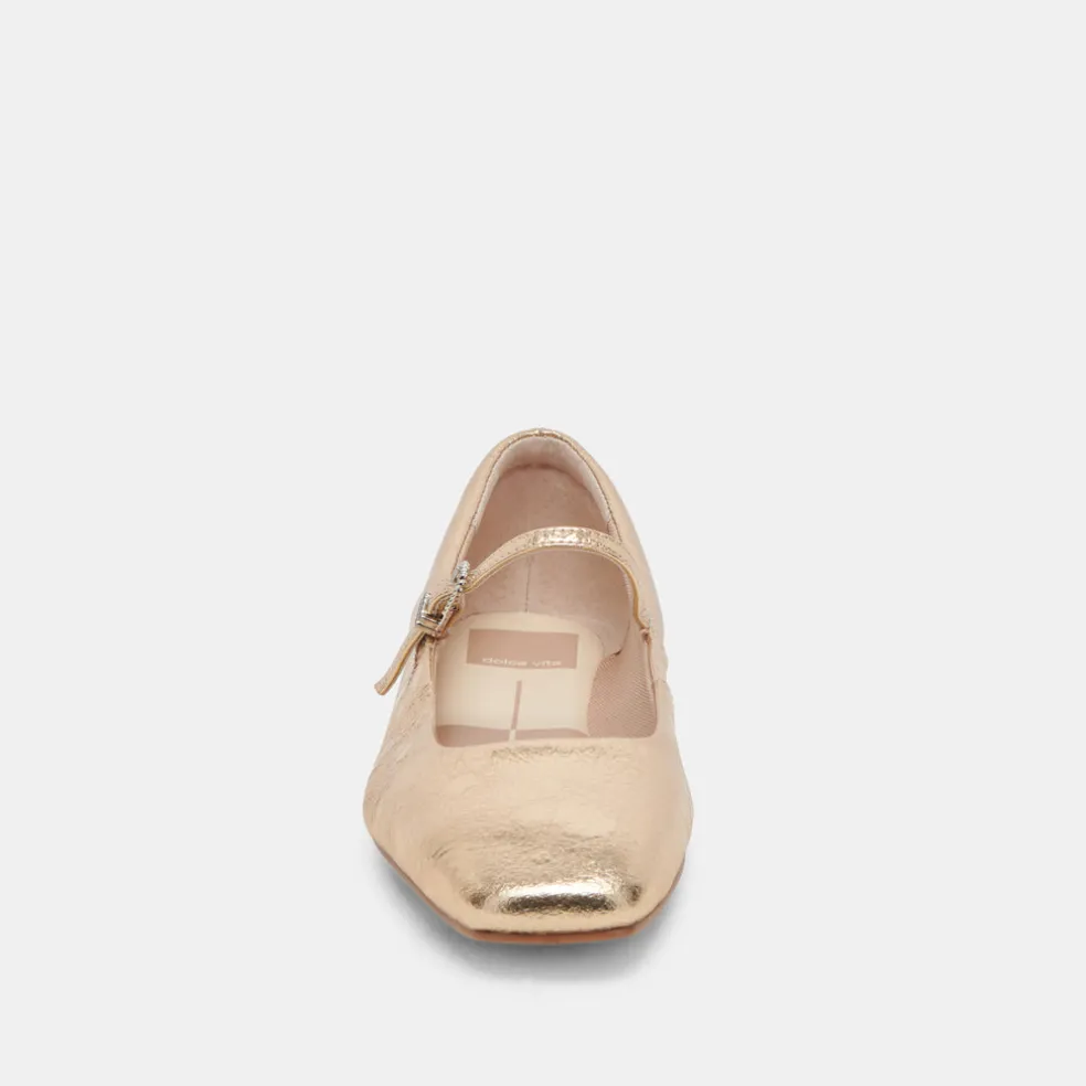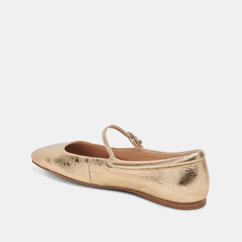 Reyes Ballet Flats Gold Distressed Leather