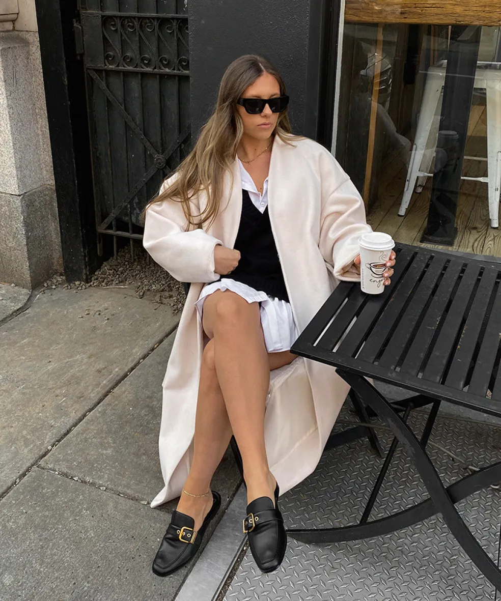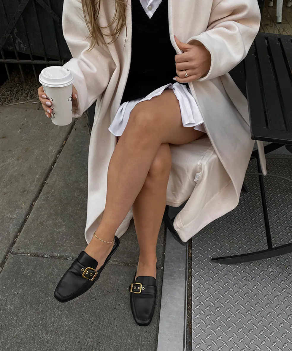 Slip Into A Pair Of Santels. This Effortless Backless Loafer Is One Of Our Favorite Styles This Season, Thanks To Its Range Of On-Trend Materials (From Metallic Suedes To Luxe Leathers) And Classic Buckle Detailing. Leather Upper + Metal Buckle Rubber Outsole Recycled Textile Lining Stella Sock 0.4″ Heel Height Importe