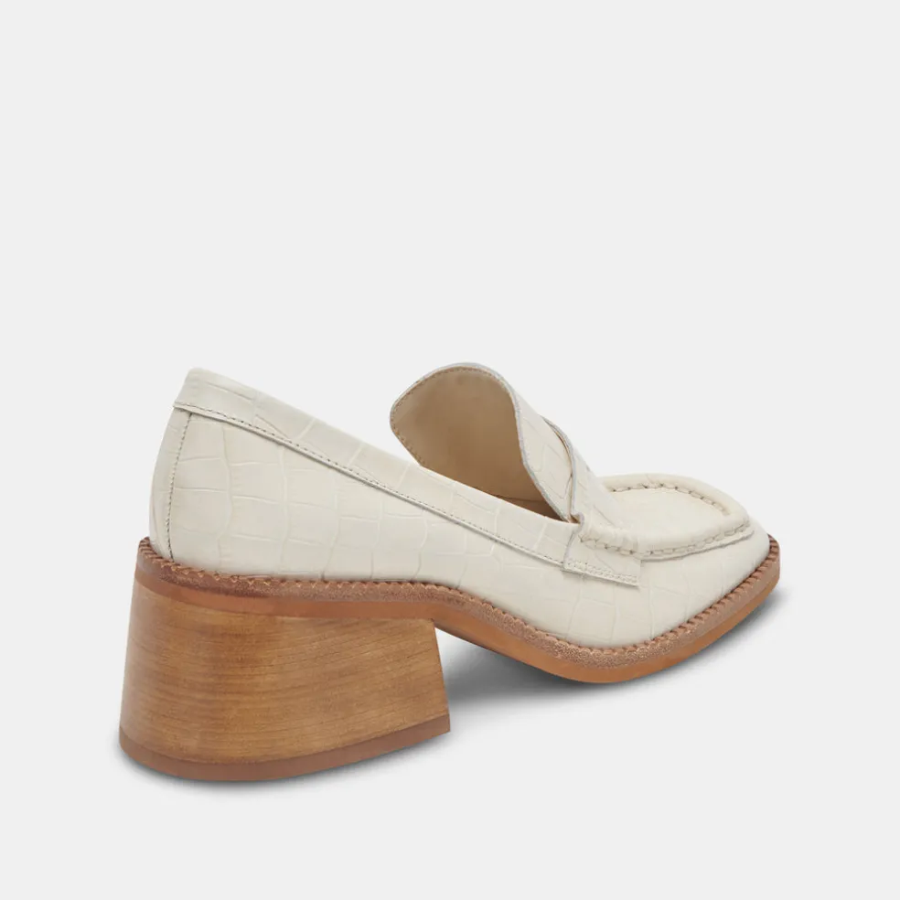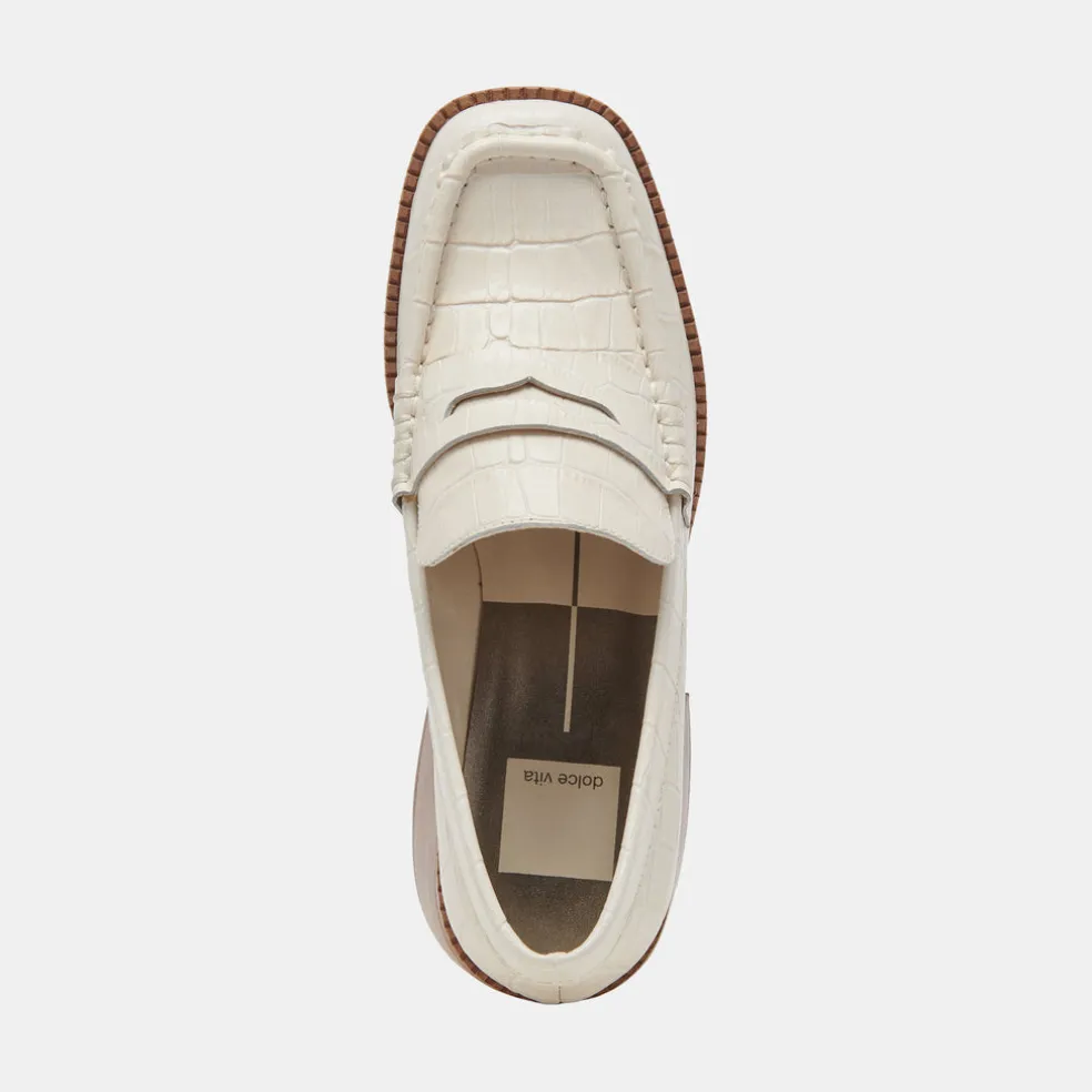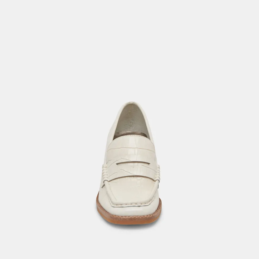 Talie Loafers Ivory Embossed Leather