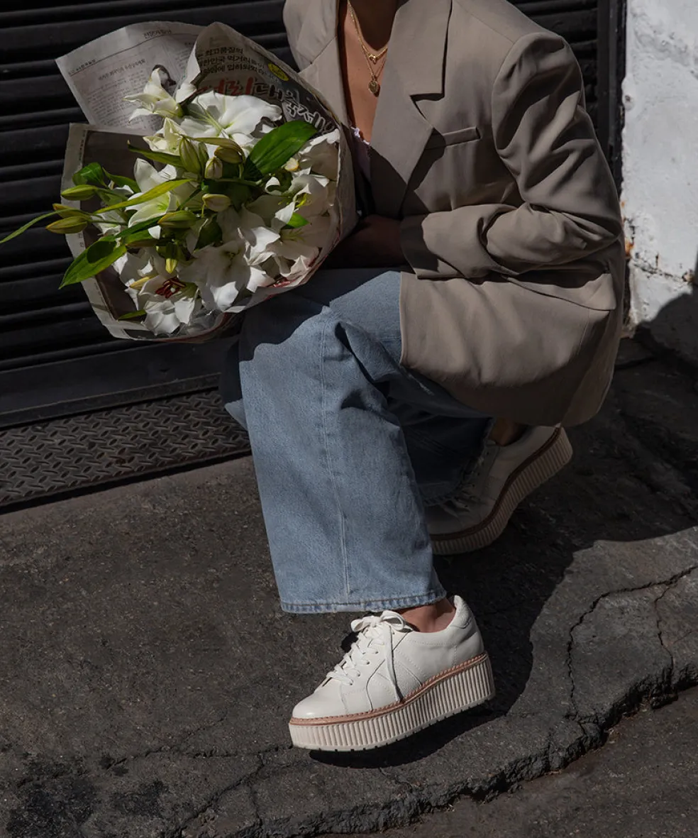 The Sneaker-Platform Hybrid You’Ve Been Waiting For. Tiger Adds A Chunky Sole Onto Our Classic Minimalist Sneaker Silhouette, Creating A Statement Shoe You’Ll Be Wearing On Repeat. Leather Upper Recycled Synthetic Outsole Water-Based Leather Alternative Lining Water-Based Leather Alternative Sock 2″ Platform Height Im