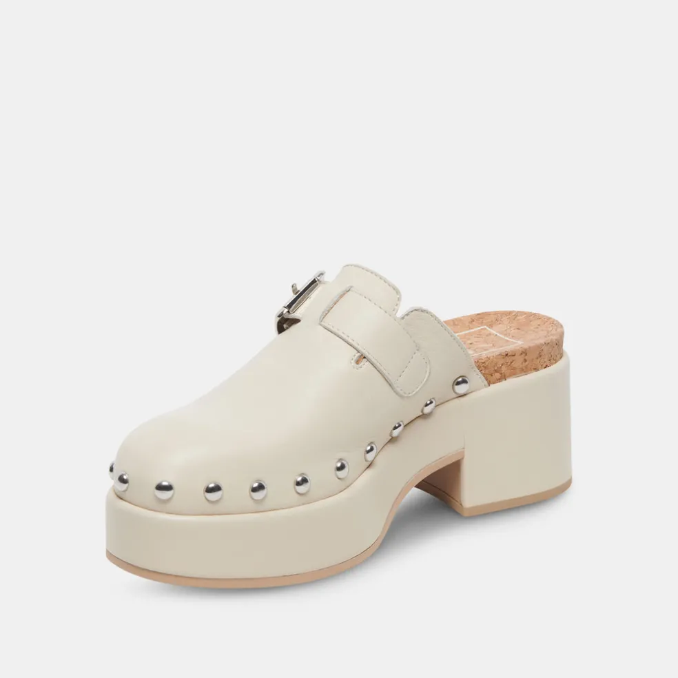 Yevan Ivory Leather Clogs Proves That Style Is All In The Details, With Metallic Stud Accents And A Chic Buckle Lending A Fresh Feel To This Iconic Silhouette.